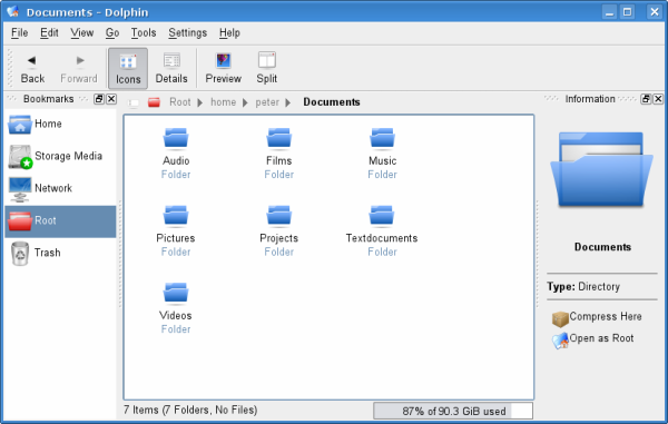 Heute werden wir einen Blick auf den neuen Dateimanager in KDE 4 werfen. Dolphin heißt er und wird Konqueror als Dateimanager ersetzen. Konqueror wird allerdings nicht aus dem Paket fliegen, sondern auch weiterhin standardmäßig installiert sein. Dolphin wird allerdings als Standard-Programm für Verzeichnisse und auch ein Icon im Kicker bekommen. Die Frage warum Dolphin Konqueror ersetzen wird läßt sich relativ einfach beantworten: Er ist simpler. Konqueror hat viele viele Funktionen, die im alltäglichen „Dateien-von-A-nach-B-schieben“ nicht gebraucht werden. Dolphin hingegen ist ein reiner Dateimanager, der schnell und zudem noch sehr übersichtlich ist. Was die Dateimanager-Fähigkeiten angeht steht er Konqueror in nichts nach und bietet noch ein paar Features, die durchaus Sinn machen.
